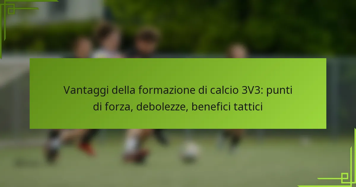 La formazione di calcio 3V3 presenta diverse debolezze che possono influenzare le prestazioni di una squadra. Queste includono una copertura difensiva limitata, alte richieste di resistenza sui giocatori, sfide nel passaggio a formati più grandi, opzioni tattiche ridotte e l’influenza significativa dell’esperienza dei giocatori sull’efficacia complessiva.